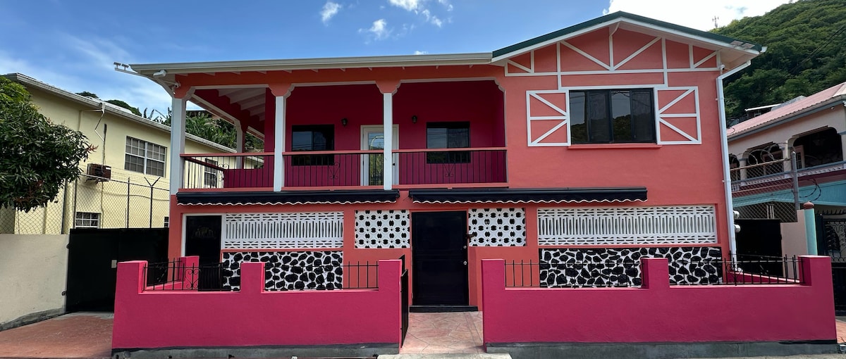 Toto je kompletný prenájom balíka. Tento apartmán má prenájom Jeep 4x4 a mobilný telefón. Apartmán má dve spálne, plne vybavenú kuchyňu, obývačku a jedáleň. Bezplatné Wi-Fi, teplá voda, úžasný výhľad na Pitons a dve minúty chôdze od pláže. Nachádzame sa 7 minút chôdze od centra mesta, kde nájdete bankomaty, reštaurácie, supermarkety atď.