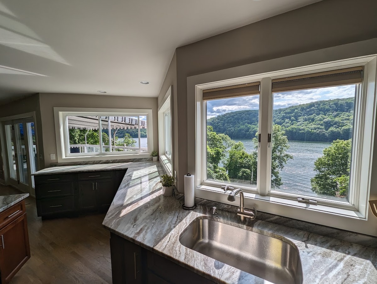 Oddýchnite si pri jazere v tomto krásnom, jedinečnom bývaní s 3 spálňami a 2,5 kúpeľňami PRIAMO pri vode v súkromnej komunite na pokojnom rybníku Squantz, ktorý susedí s jazerom Candlewood Lake. Vychutnajte si nádherný výhľad na jazero nedotknutého štátneho lesa Pootatuck z terasy alebo na verande. Plávajte, chytajte ryby alebo si oddýchnite v súkromnom prístave. Prenájom kajaku a paddleboardu v okolí. Dom je centrálny klimatizovaný a plne vybavenou kuchyňou. Čaká na vás naše špeciálne bývanie.