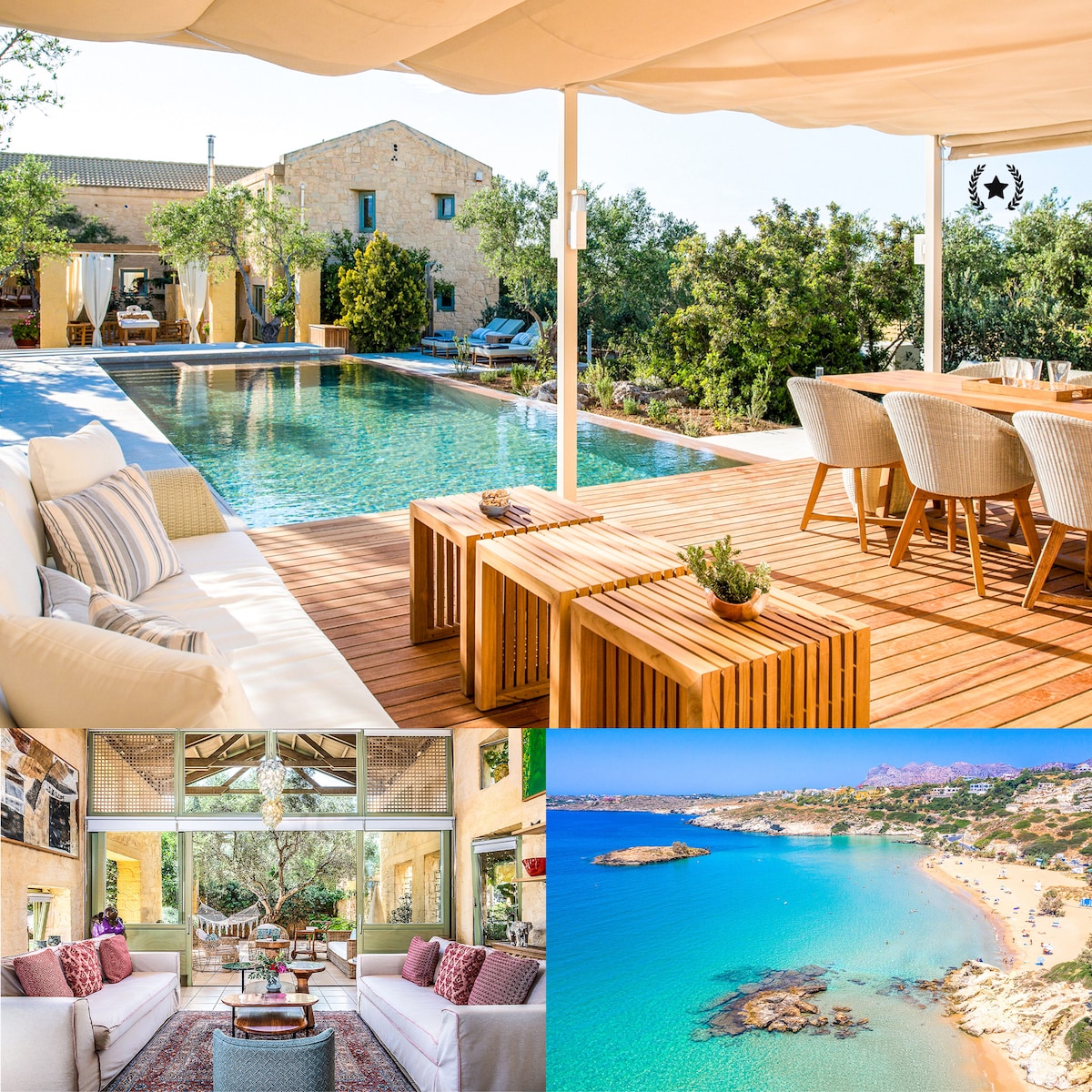 Malvezzino Villas sú schválené gréckou organizáciou pre cestovný ruch a spravované "etouri vacation rental mangement". Luxusné vily Malvezzino sa nachádzajú na svahu kopca a majú úchvatný panoramatický výhľad na more a mesto Heraklion (ktoré je vzdialené len 15 km) a ponúkajú ľahký prístup k mnohým plážam, pričom najbližšia je len 2 minúty jazdy autom (1,2 km).