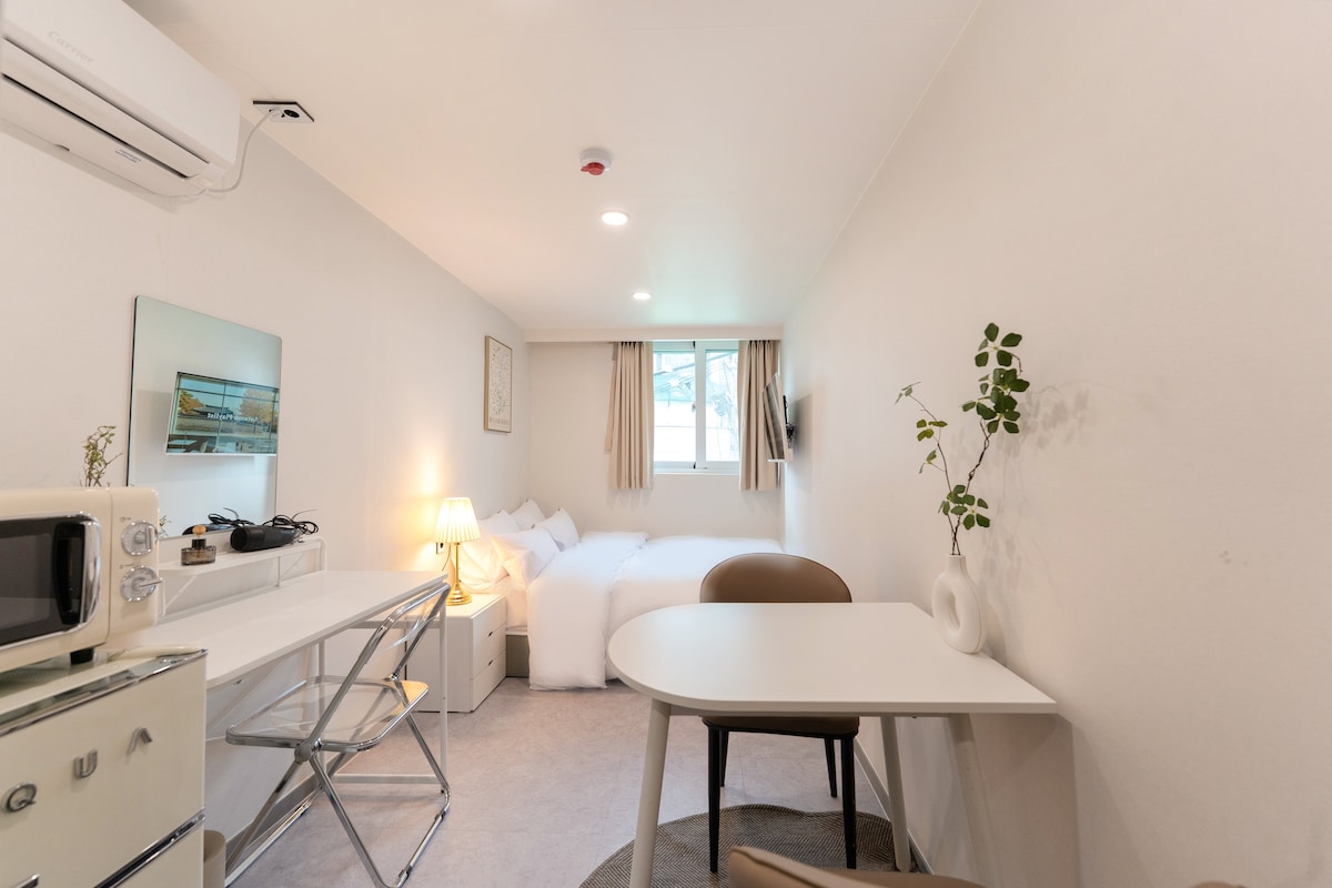 (Novo otvorené) Izba pre 1 až 2 osoby Skladá sa z vlastnej kuchyne a kúpeľne. 🛏Pohodlná posteľ s manželskou posteľou a vankúšom Slnečné okná S výťahom Nachádza sa v blízkosti letiska Inčchon od centra Soulu. Môžete prísť v krátkom čase K dispozícii sú linky metra 2 a 5, takže kdekoľvek v Soule Je dobré ísť na turistické atrakcie bez prenosu Posteľnú bielizeň a prikrývky vymieňame zakaždým a uprednostňujeme čistotu. 🛎Pokyny k ubytovaniu Príchod 16:00 Odchod: 11:00 Pohodlie v blízkosti 🛒ubytovania GS CU Convenience Store - 1 minúta Lotte mart - 5 minút Costco - 7 minút Olive Young - 7 minút Daiso - 7 minút (ak vystúpite z letiskového autobusu 6008, môžete ho použiť hneď) 🗽Atrakcie idú metrom č. 2 5 (K dispozícii bez prevodu) Univerzitná stanica Hongik - 7 minút Stanica Yeouido – 7 min. Vstup na národnú univerzitu v Soule - 17 minút Stanica Gwanghwamun – 18 minút Historický kultúrny park Dongdaemun – 25 minút Gangnam - 32 minút Seongsu - 34 minút Mullae-dong, Times Square a E-Mart sú vzdialené 7 minút cesty autobusom.