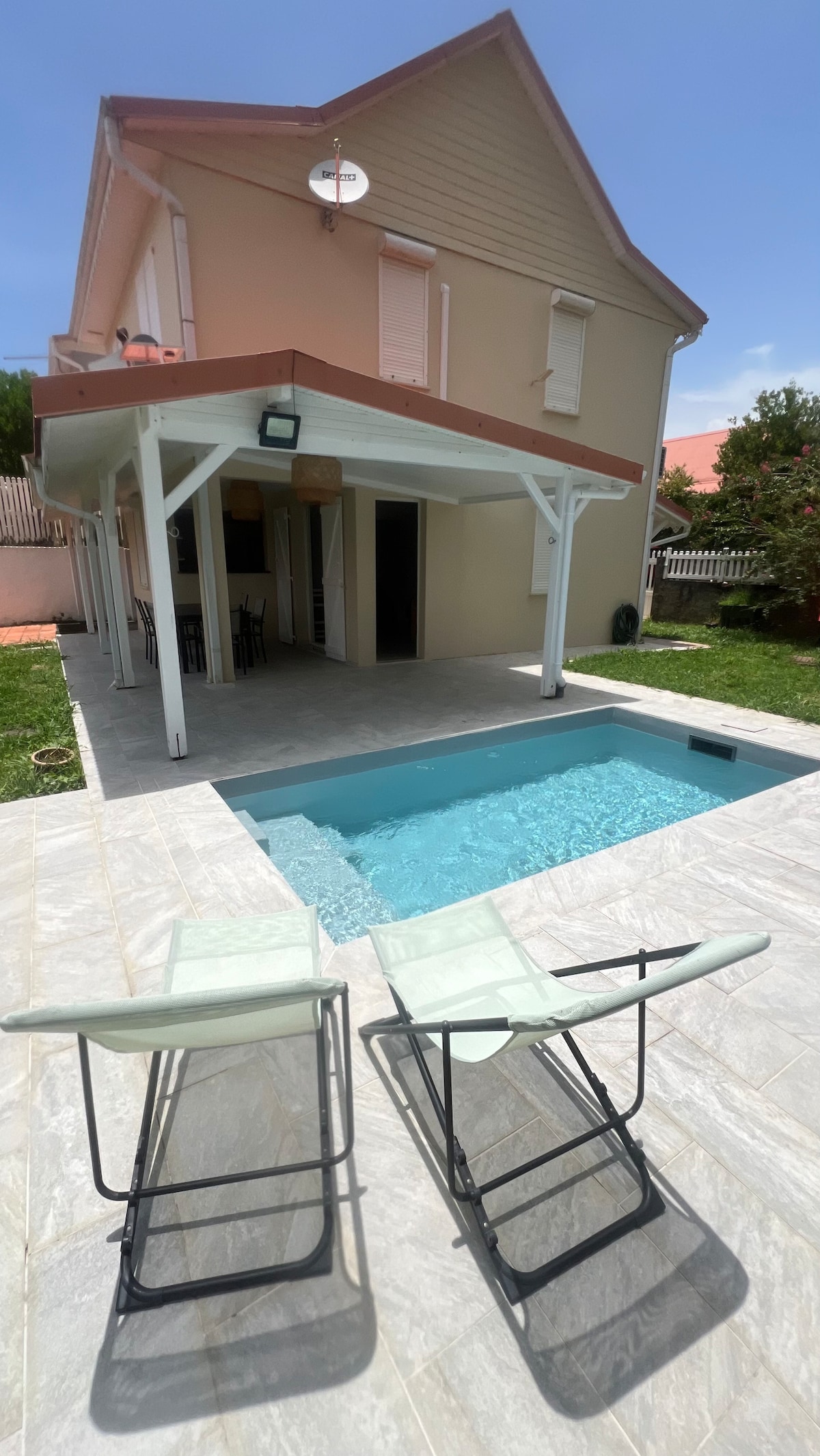 Vitajte v našom bungalove v pokojnom a zelenom prostredí, ktorý sa nachádza 5 minút od letiska a 10 minút od krásnych pláží. Tento kokón zahŕňa klimatizovanú spálňu, kúpeľňu, samostatné WC a vybavenú kuchyňu. Užite si relaxačné chvíle pri bazéne s plávajúcim podnosom, ležadlami a jedálenským kútom. Náš bungalov sa nachádza v centre mesta na objavovanie severu a juhu ostrova a je ideálnou základňou pre vaše tropické dobrodružstvá.