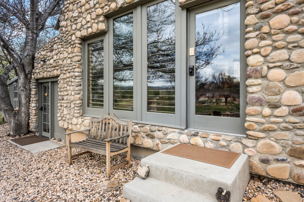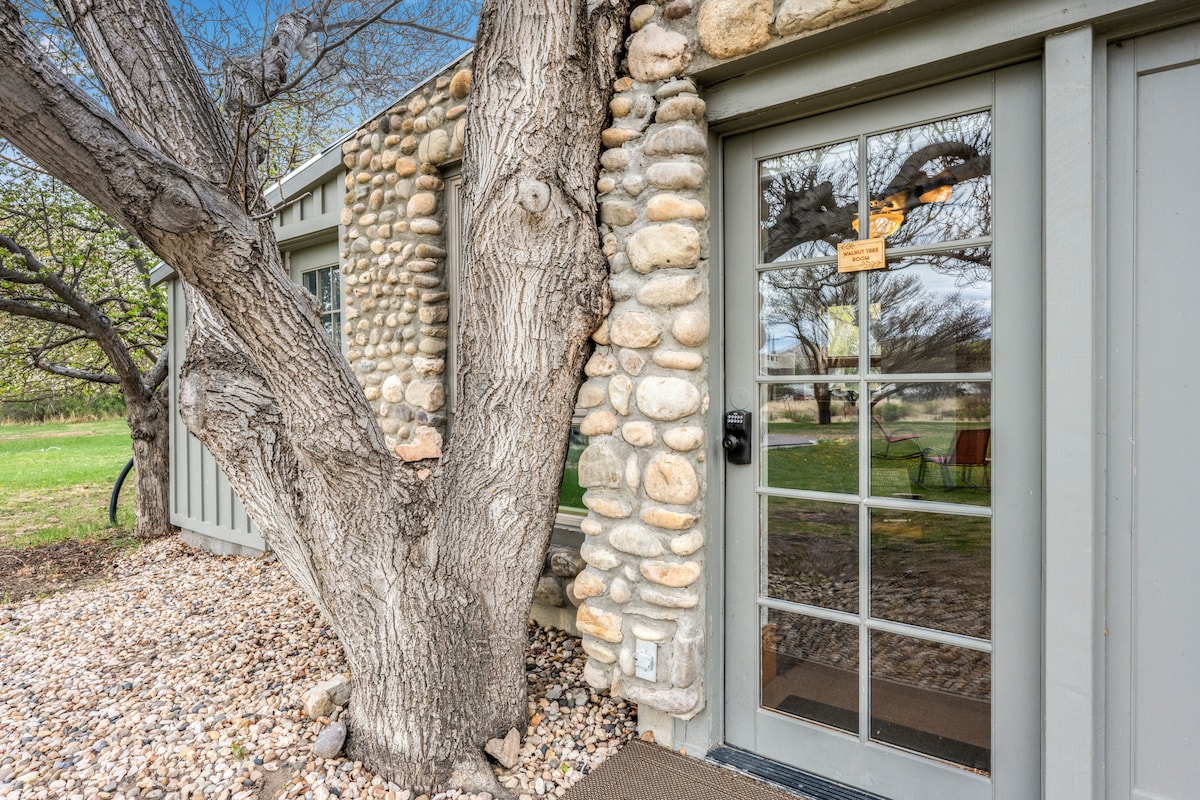 The River Stone Inn at Bryce is located just 10 miles from Bryce Canyon National Park. The Walnut Tree Room at the River Stone Inn is a beautiful and private room in a converted art studio, located behind the main house with private outside entrance and designated parking spot. Your room features a king bed and a private bathroom with pebble stone walk-in shower. In room kitchenette includes refrigerator, microwave & coffee maker with coffee, teas & hot chocolate. High speed Wifi included.