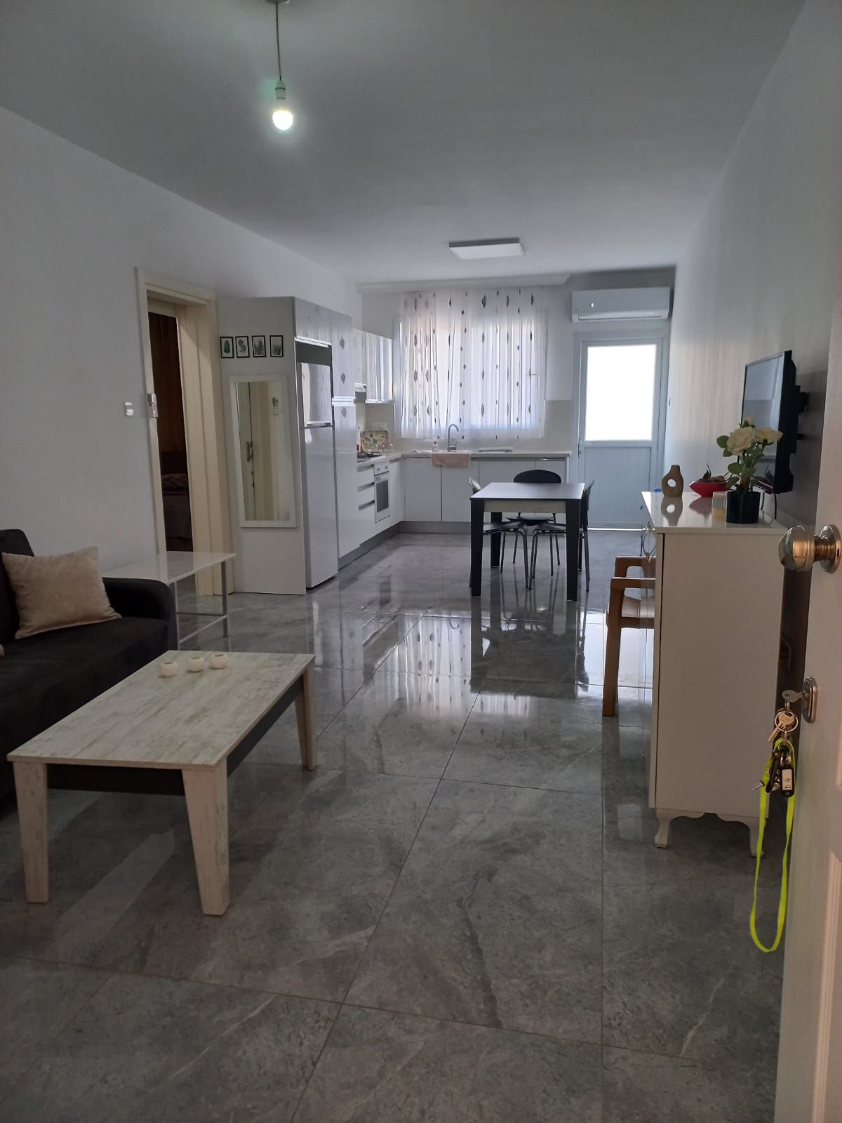 🏡 Ubytovací priestor Náš novovybudovaný moderný apartmán 2+1 sa nachádza v srdci centra mesta Kyrenia. Ponúka pohodlný pobyt s priestrannými obytnými priestormi, moderným nábytkom a štýlovou výzdobou. Pre vašu informáciu, v tej istej budove je celkovo 16 apartmánov a všetky apartmány sú identické; nie je medzi nimi žiadny rozdiel. Môžete sa ubytovať bez obáv; všetky naše apartmány sú pripravené podľa rovnakého štandardu, s rovnakým vybavením a s rovnakou starostlivosťou. Prajeme Vám príjemný pobyt.