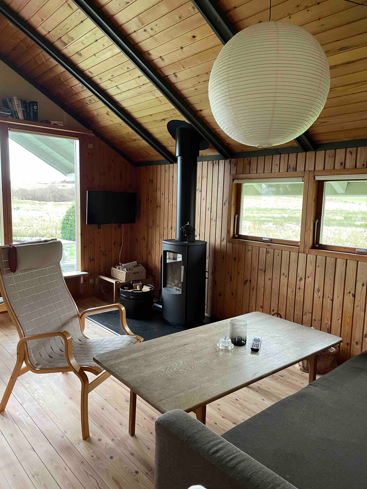 Oddýchnite si v tomto jedinečnom a tichom dome s výhľadom na fjord Vejle, polia a lesy. Dom má obývaciu izbu s kuchyňou, jedálenským kútom a rozkladacou pohovkou, WC so sprchovacím kútom a na poschodí so spálňou. K dispozícii sú dve vyvýšené postele (manželská posteľ), ako aj samostatná posteľ. Nezabúdajte, že schody na 1. poschodie sú trochu strmé a okolo manželskej postele nie je toľko miesta. Vonku sú dve terasy, obe s výhľadom. K dispozícii je sporák na drevo s voľne dostupným palivovým drevom. Posteľná bielizeň aj uteráky sú zahrnuté v cene.