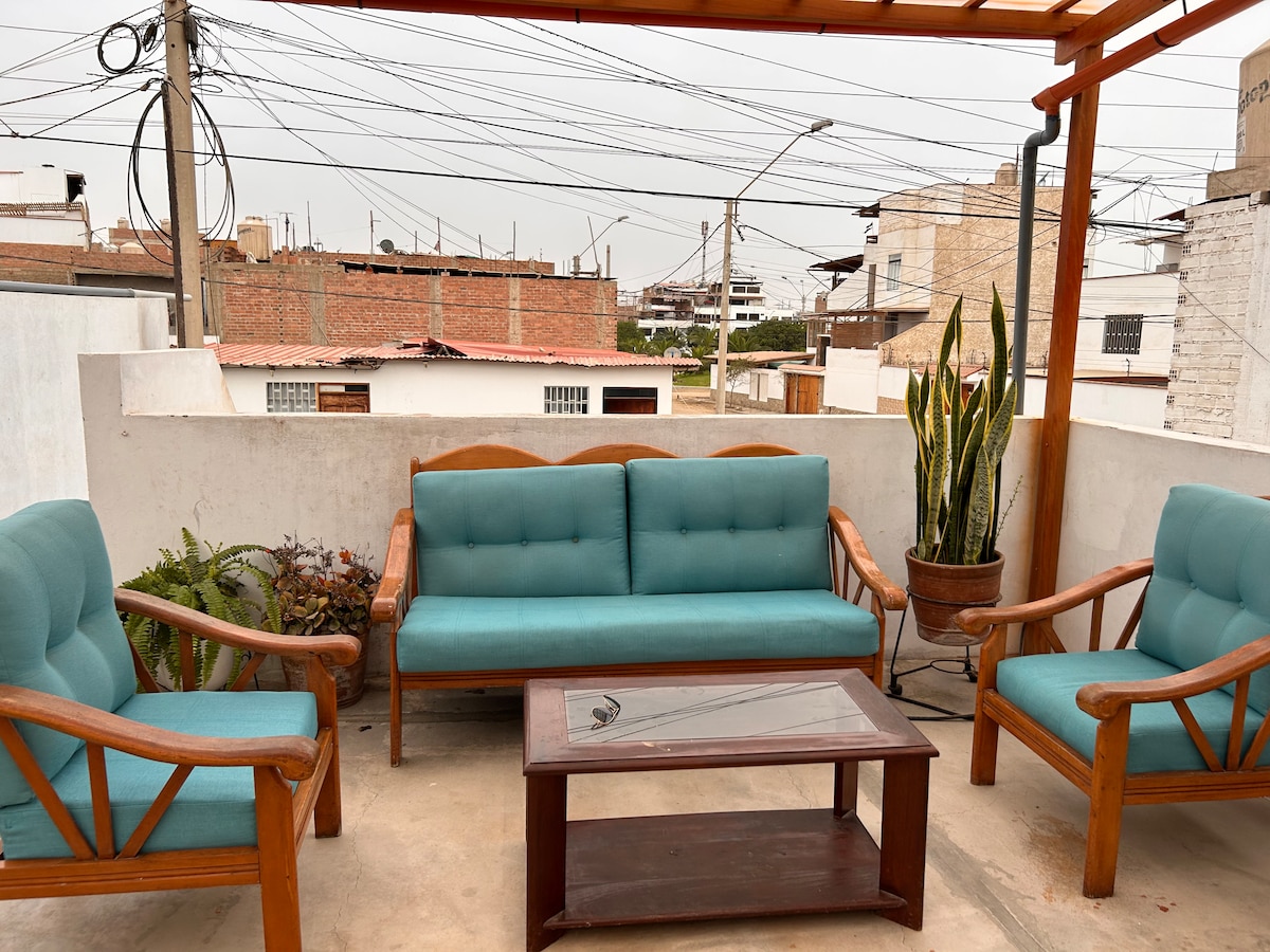 Krásny a útulný hosťovský apartmán v srdci Chaclacayo. Nachádza sa blok od hlavného námestia a v priebehu niekoľkých minút od reštaurácií, obchodov s potravinami a obchodov. Priestor je apartmán, ktorý sa môže ubytovať dve osoby a má vlastnú spálňu, kúpeľňu, kuchyňu a obývaciu izbu. Posteľ pre ďalšieho hosťa je k dispozícii na požiadanie. Budete mať tiež prístup do krásnych vonkajších priestorov, ktoré zahŕňajú bazén, terasu, záhrady a gril. Príďte si oddýchnuť!