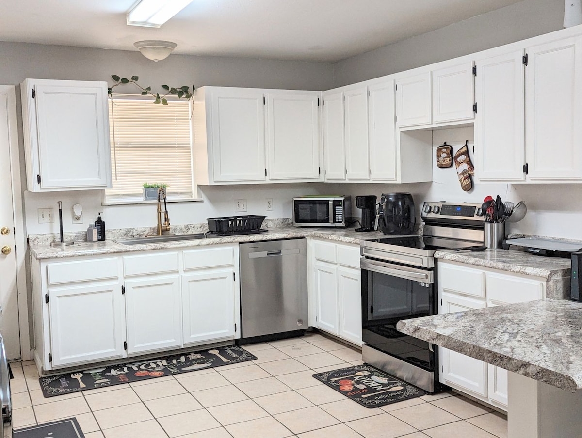 ✹ Zľavnené dlhšie pobyty Nabíjačka elektromobilov ✹ úrovne 2 v garáži pre 2 autá ✹ 1 Gbps Ultra vysokorýchlostné Wi-Fi ✹ 65-palcový 4K LED televízor s DVD prehrávačom ✹ Súkromný dvor s priestranným trávnikom + krytým posedením na terase + gril ✹ Plne vybavená kuchyňa ✹ Luxusné postele z pamäťovej peny vo všetkých spálňach s 1 manželskou posteľou King +2 Queen+1 Domáce zvieratá s ✹ dobrým správaním sú povolené prípad od prípadu ✹ Centrálna poloha v blízkosti miestnych reštaurácií, potravín a atrakcií Potrebujete viac televízorov? Zvážte našu najnovšiu ponuku airbnb.com/h/zendelight