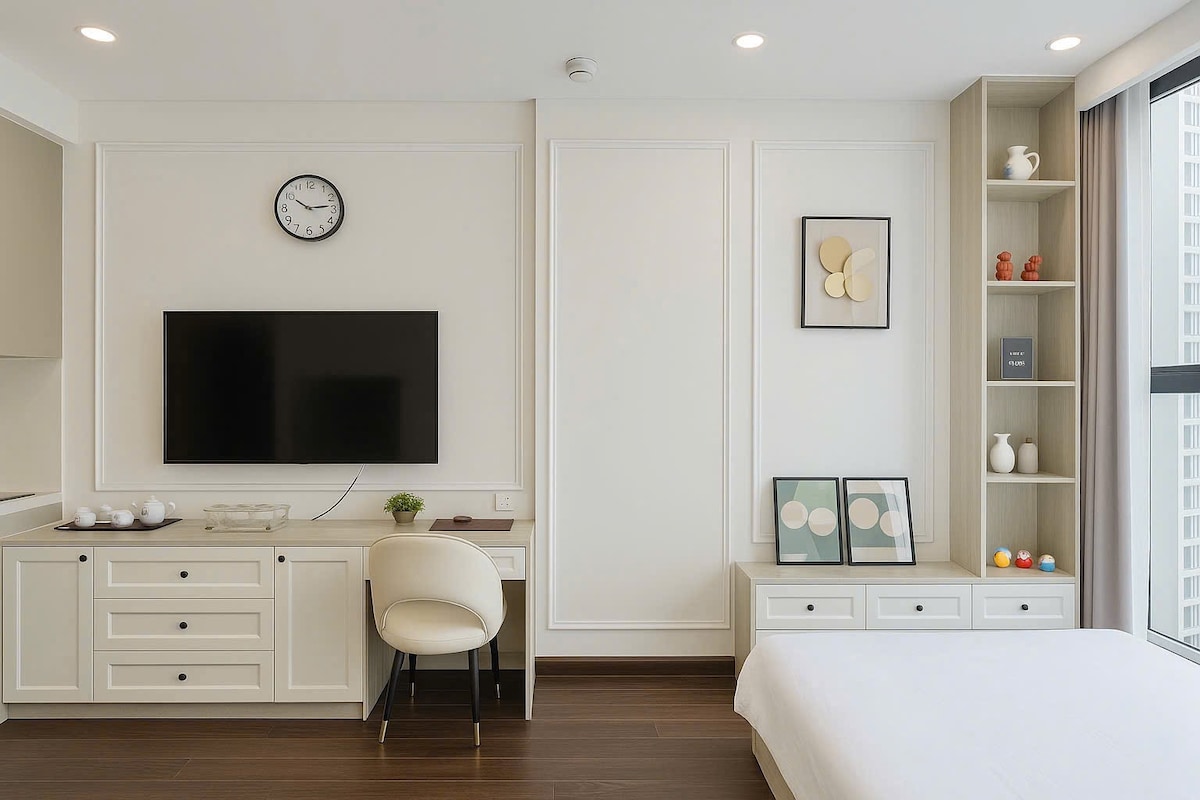 Luxusný apartmán vo Vinhomes Smart City s kompletným vybavením pre páry, turistov alebo obchodných cestujúcich. Tu si oddýchnete a oddýchnete v pokojnom, luxusnom priestore. Poplatky zahŕňajú: 1. Vnútorný bazén 2. Vonkajší bazén 3. Posilňovňa 4. Pracovný priestor 5. Nákupy a zábava v nákupnom centre Vincom Mega Mall. 6. Príchod a fotenie virtuálnych fotiek v japonskej záhrade 7. Prejdite sa medzi modrým morom a bielym pieskom v srdci Hanoja. 8. Večierok pri grilovaní