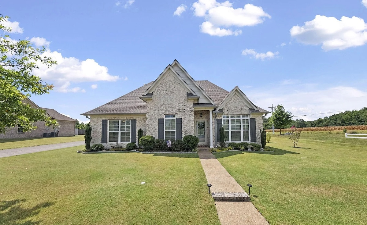 "Welcome to our cozy and spacious 4 bedroom home that sleeps up to 8 guests. Nestled in a charming neighborhood, it offers the perfect escape from the hustle & bustle of the city. Enjoy beautiful weather in the enclosed patio, maximum relaxation on our decks, & fishing at the pond just a short walk away. Located just 7 min from FedEx World-Headquarters, 8 min from the Carriage Crossing Mall, & 22 miles from historic Beale Street! Book now and experience a lovely stay in our home!