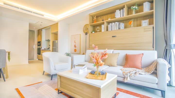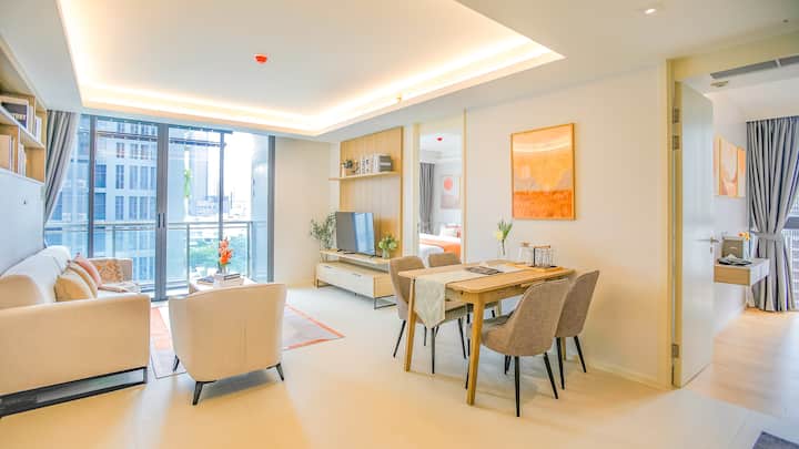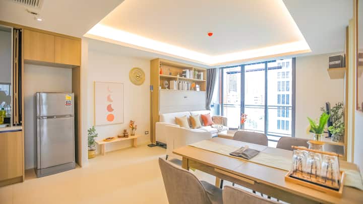 [Veľká zľava na konci mesiaca] Dve spálne, dve kúpeľne a bezplatné internetové pripojenie, bazén, posilňovňa a bezplatný transfer z letiska Bangkok centrum mesta BTS Phrom Phong, možnosť variť