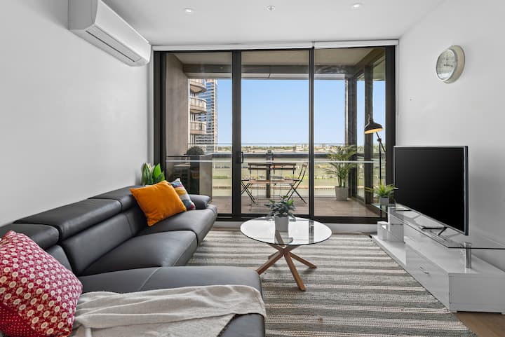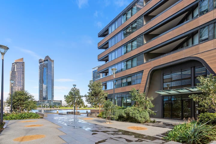 Výhľad na prístav Docklands s parkoviskom, bazénom, posilňovňou, Wi-Fi