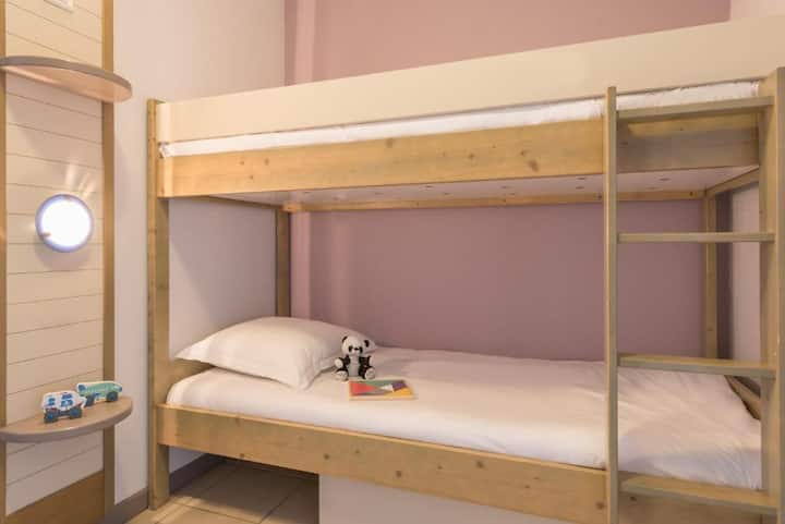 Ubytujete sa v klimatizovanom apartmáne zariadenom starostlivo. Tu sa budete cítiť ako doma. Môžete využiť balkón a vychutnať si jedlo pri pohľade na more. Obyvatelia budovy Lavandes budú mať tú česť, že sa budú môcť ponoriť do malého bazéna otvoreného od júna do septembra. Obyvatelia budovy Mimosas si od júna do septembra užijú bazén Mas de Tanit.