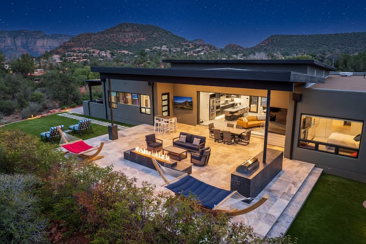 Vitajte v časti Sedona Shangri-La, vaša brána k očarujúcemu zážitku v Sedone! Toto výnimočné útočisko s 5 spálňami s pripojeným penziónom a dvoma kuchyňami sa nachádza v srdci západnej Sedony a dvoma kuchyňami a ponúka luxusný únik s úchvatným 180-stupňovým panoramatickým výhľadom a prezentuje samotnú podstatu krásy Sedony. Ponorte sa do kúzla červených skál a buďte len pár krokov od renomovaných mystických chodníkov. Vaša dovolenka snov v Sedone sa začína tu.