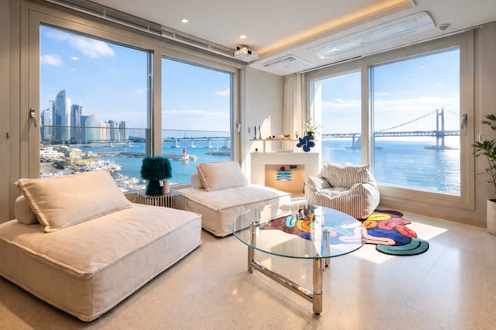 Privé97#Ubytovanie v Gwangalli#Panoramatický výhľad na oceán#Výhľad na Marine City#Skorý check-in#Parkovanie zadarmo#Obývacia izba + 2 spálne#20 pyeongov