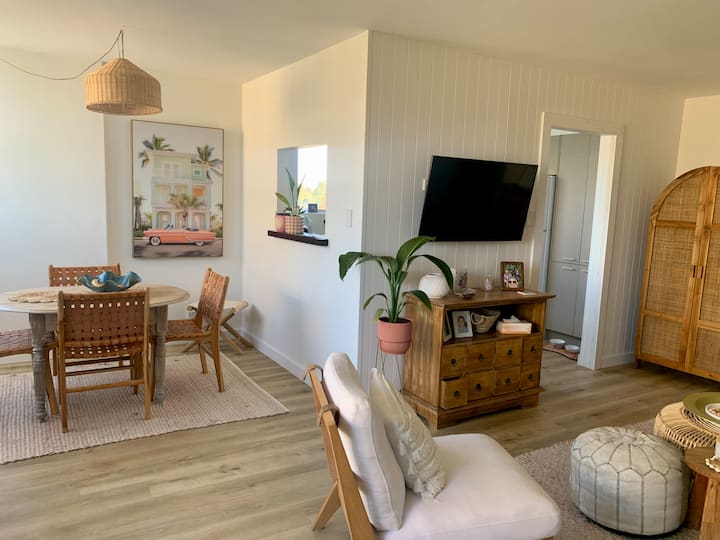 Svetlé „pobrežné boho“ 2-spálňová JEDNOTKA s bazénom a garážou