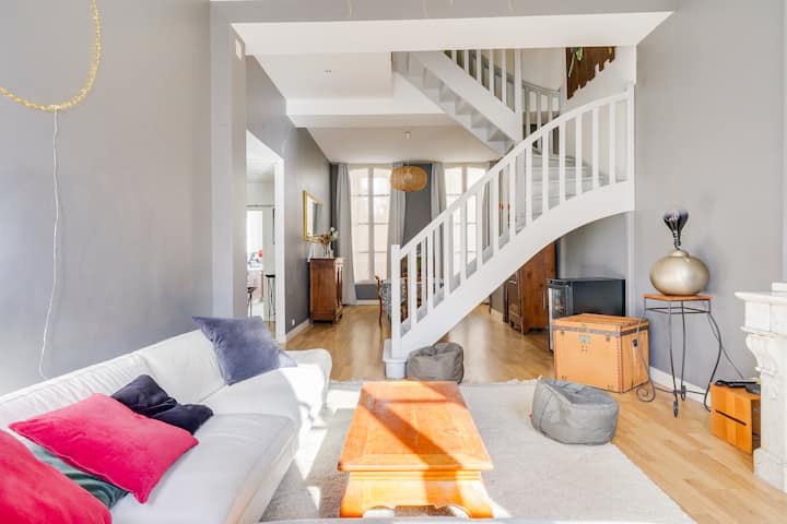 Užite si vynikajúci pobyt v tomto priestrannom dvojpodlažnom apartmáne s ideálnou polohou v Zlatom trojuholníku v štvrti Grands Hommes. Le Mably Family sa nachádza na 2. poschodí krásnej budovy z 19. storočia bez výťahu a je teplá a priateľská, ideálna pre rodinný alebo služobný pobyt! Ponúka všetko pohodlie, ktoré potrebujete na výnimočný pobyt v Bordeaux, ktorý mieša modernosť so šarmom starého sveta.
