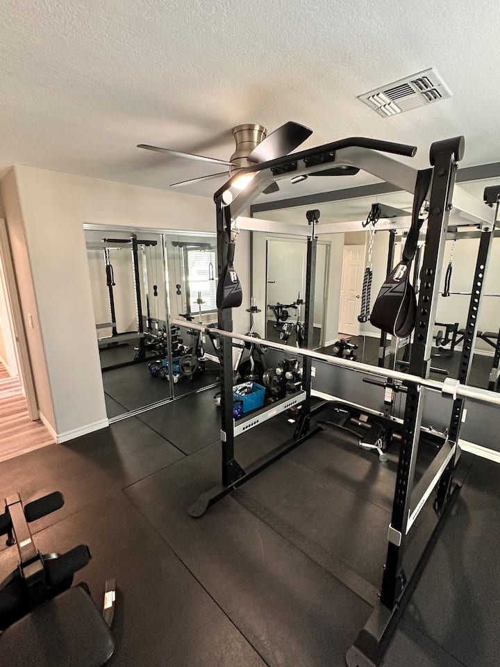 Dobre si zacvičte, veď sú tu k dispozícii bežecký pás, podložka na jogu a činky. Prečo to nevyužiť?