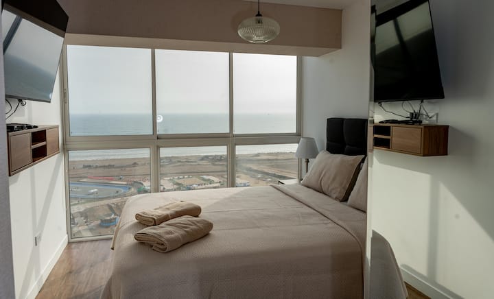Pekný apartmán s 3 izbami. Výhľad na more