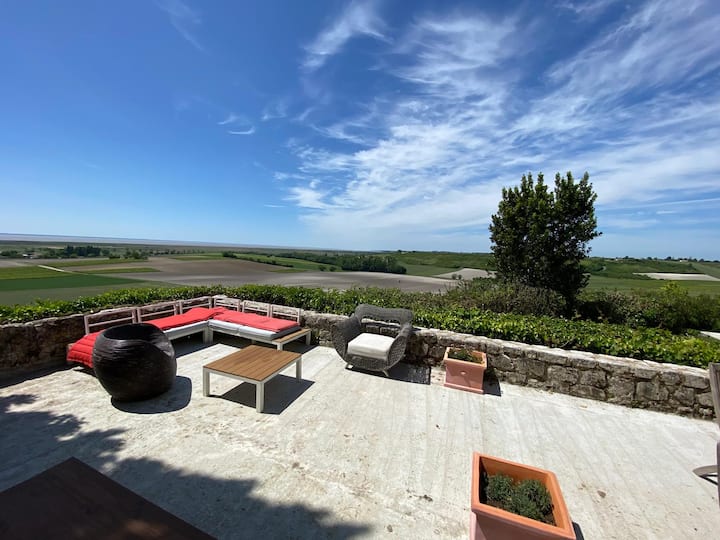 Každá izba, orientovaná na ústie rieky Gironde a terasu, je kúpaná v prirodzenom svetle a ponúka úžasný výhľad a príjemný oddych.