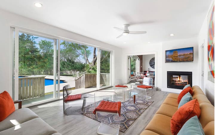 A to najlepšie? Sme cez ulicu od Three Mile Harbor Bay s vlastným ľahkým prístupom v našej štvrti. Longboardy a kajaky sú k dispozícii na prenájom pre vaše potešenie. Užite si perfektnú dovolenku v Easthamptone v našom novo zrekonštruovanom dome.