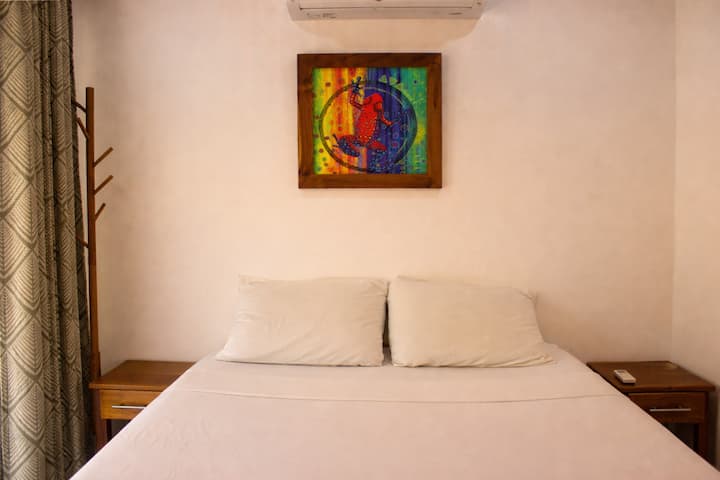 Sloth House sa nachádza v žiadanej štvrti Las Huacas a ponúka súkromie a pokoj, pričom je len pár minút od Playa Guiones – známej pre surfovanie, joga a živú plážovú kultúru. Užite si ľahký prístup k najlepším reštauráciám, kaviarňam a dobrodružstvám v Nosare pred návratom do pokojného útočiska v džungli v Happy Campe.