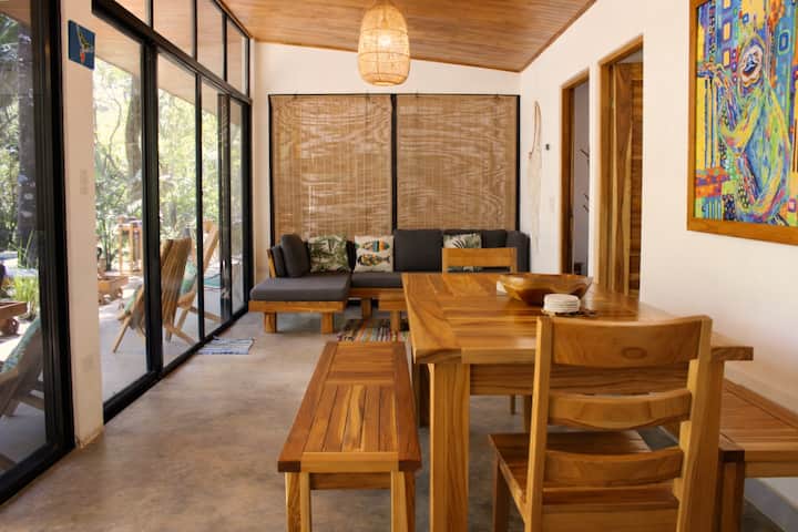Premyslene navrhnutý v minimalistickom štýle, Sloth House je ideálny pre surferské výlety, joga pobyty, rodinné dovolenky alebo uvoľnené pobyty s prácou na diaľku v pokojnom prostredí džungle.