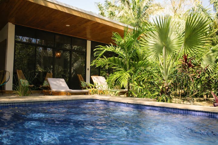 Vitajte v Sloth House, súkromnom dome s 2 spálňami v džungli v rámci zdieľaného objektu Happy Camp v Las Huacas v Nosare – len pár minút od Playa Guiones. Užite si vlastné súkromné vnútorné priestory a prístup k spoločnému bazénu, terasám a pokojným terasám obklopeným prírodou.