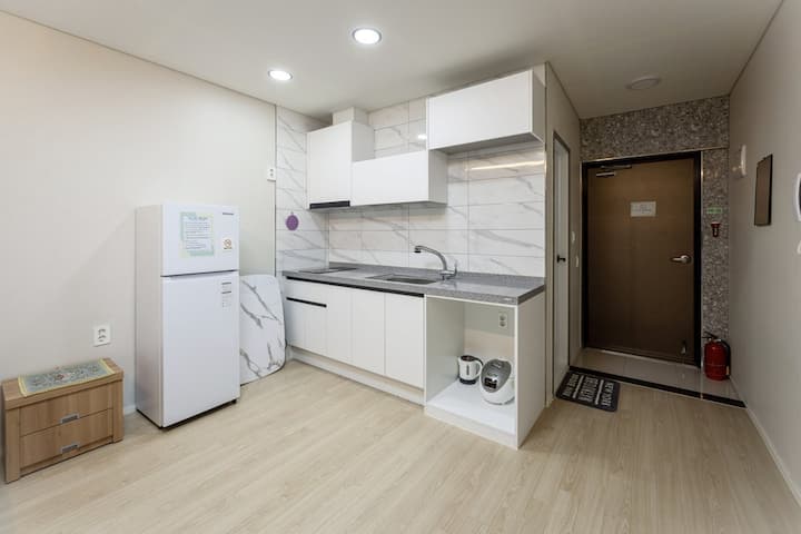Pri pohľade na ostatných hostí z dôvodu požiaru a zápachu zakazujeme varenie bravčového mäsa, rýb a cheonggukjang, preto použite vonkajšie vyhradené miesto a priestor na grilovanie.