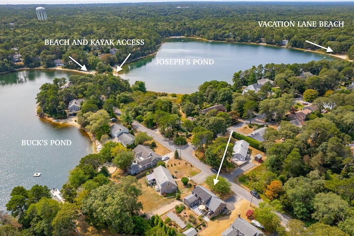 Vitajte v Homeport!! Toto je vynikajúci prenájom v dokonalej lokalite Harwich, ktorá sa nachádza v pokojnej štvrti s prístupom k dvom sladkovodným jazerám. 300 krokov 3 minúty chôdze v slepej uličke vás zavedie na pláž Great Sands Lake Association medzi slávnym rybníkom Buck 's Pond a John Joseph Pond. Dom je pohodlne zariadený a má jedinečne zábavný dvor s kurtom Bocce a jámou na podkovy, aby bola vaša dovolenka zábavná. Tri spálne a dve kúpeľne sa dokonale zmestia pre deväť hostí a balík doplní skvelé vybavenie. 2 nové televízory Roku sú vybavené tak, aby podporovali vaše streamovacie služby, a klimatizačné jednotky v celom objekte vás ochladia. Dve kúpeľne s toaletou a priestranná uzavretá vonkajšia sprcha s šatňou znamenajú, že ľudia nebudú musieť čakať na túto sprchu po plávaní. Na terase je vonkajšie posedenie a plynový gril Weber. Trojsezónny SunRoom (Happy Tapper) je pokojné miesto, kde si môžete vychutnať rannú šálku kávy alebo zazvoniť, pretože „niekde je 5 hodín!“ Pre vaše pohodlie sú k dispozícii plážové stoličky a slnečník. Rodinný herný šatník je plný hádaniek a zábavných hier, ktoré vám pomôžu ísť po zotmení. 6 minút jazdy na pláž Red River Beach, 8 minút na pláž Bank Street Beach a 12 minút jazdy na hlavnú ulicu Chatham na klasickú večernú prechádzku po Cape Cod. Šesť minút od Budovho minigolfu a motokáry a trampolínový park je vzdialený 2 minúty. Zmrzlina v škole Sundae School je vzdialená 7 minút, zatiaľ čo ranné raňajkové burrito si môžete dať v obchode Corner Store, ktorý je vzdialený asi 6 minút. To všetko bez toho, aby ste uviazli v škaredej premávke na ceste č. 28. Začnite svoju novú letnú tradíciu v Homeport v štvrti Great Sand Lakes Association.