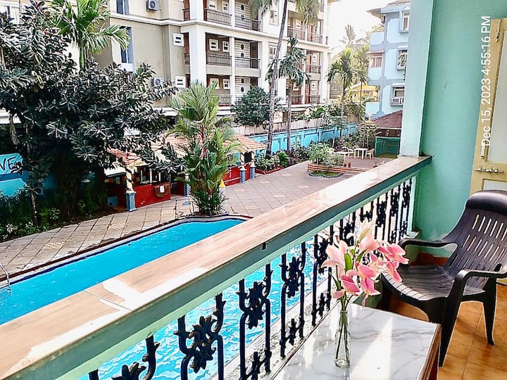 1 spálňa s výhľadom na bazén neďaleko pláže Calangute