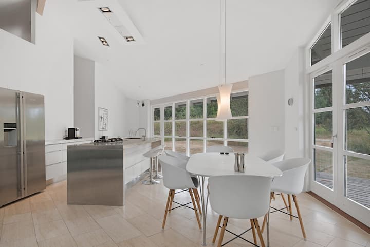 Dom vás privíta v super krásnom, elegantnom a modernom prostredí. Dovolenkový dom je ľahký a príjemne zariadený a z veľkých okenných stien s terasovými dverami je krásne svetlo.