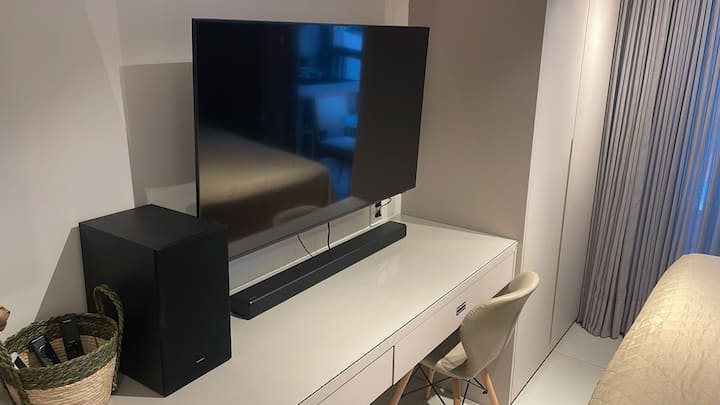 Dobre si zacvičte, veď sú tu k dispozícii bežecký pás, stacionárny bicykel a činky. Prečo to nevyužiť?