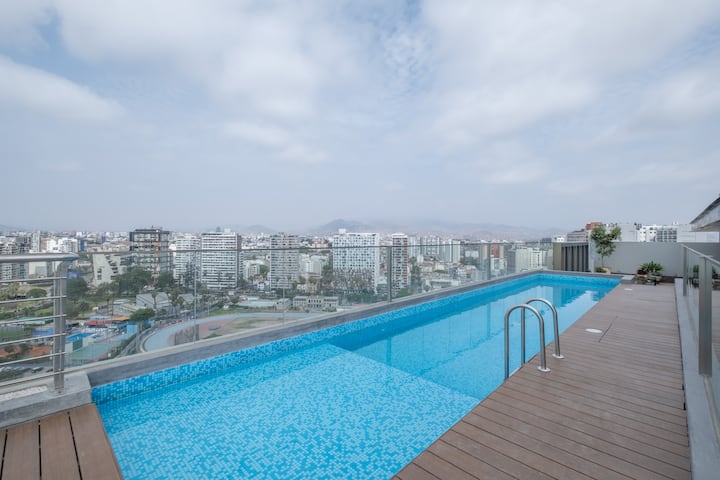 iH*| Nový štýlový apartmán s 1 spálňou a bazénom na streche