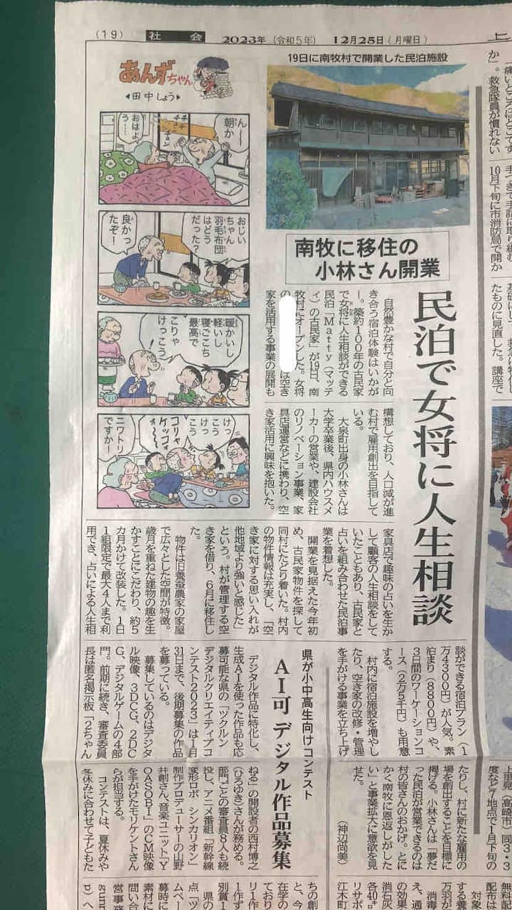 Čím je moje bývanie jedinečné: ① Dedina s najvyššou mierou starnutia obyvateľstva v Japonsku (možnosť vymiznutia č. 1) ② Môžete získať veštenie