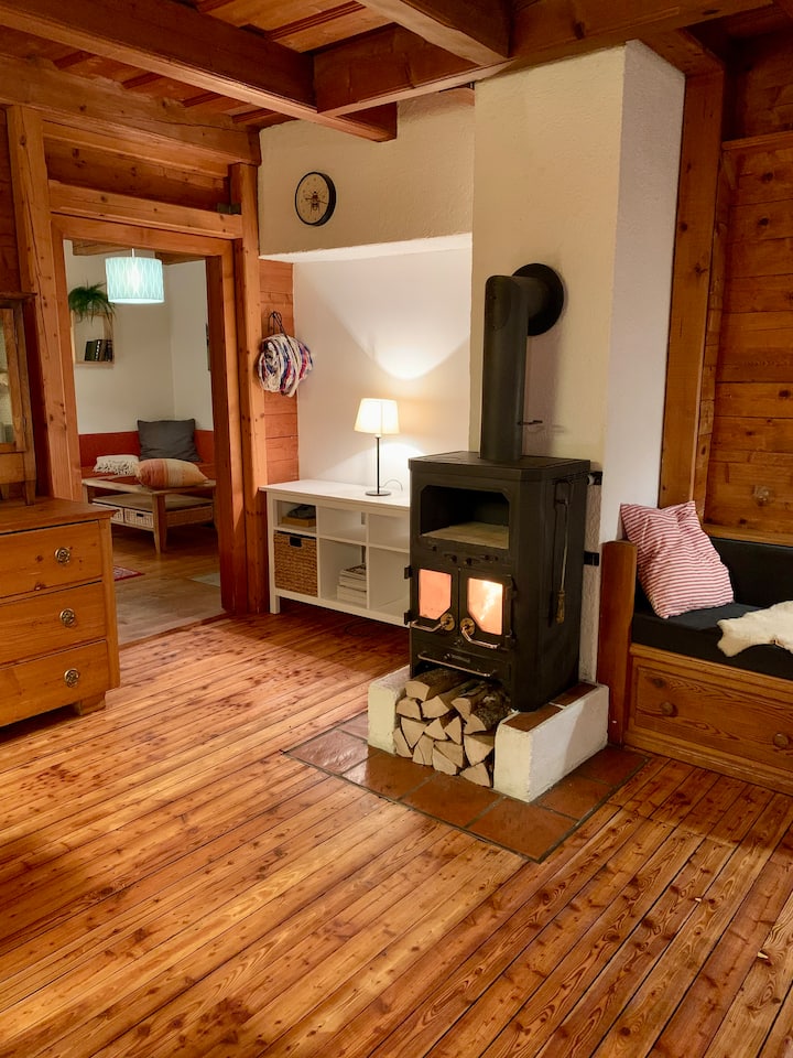 V obývacej izbe môžete samozrejme použiť sporák na drevo. V prípade potreby je k dispozícii drevo, prvé vrece dreva je zadarmo, za každé ďalšie 10 € bude účtovaných.