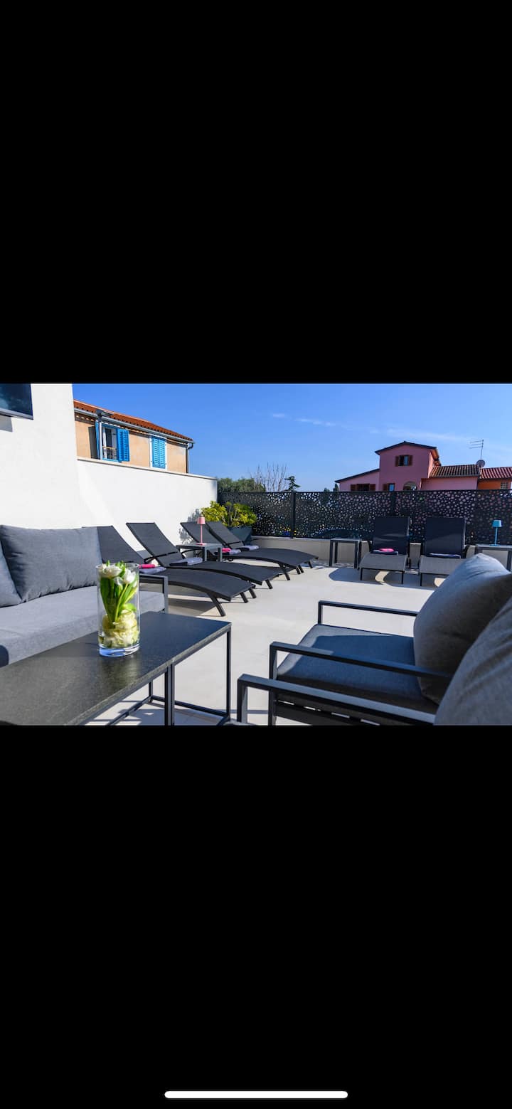 - Novigrad: dovolenkové prenájmy s vonkajším sedením