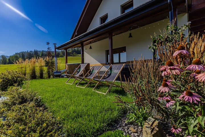 Maciejowe Wzgórze je skvelé miesto na oddych v ktoromkoľvek ročnom období. Máme intímnu nehnuteľnosť pozostávajúcu z dvoch apartmánov Luboń a Maciejowa. Cena ubytovania je zahrnutá v budove vedľa kúpeľov - jacuzzi, fínska sauna, soľná tubing. Pre tých, ktorí sú smädní, sme pripravili exkluzívnu loptu na súkromnej terase. Dodatočné náklady/400 USD za pobyt. Ak si naozaj chcete oddýchnuť od mesta, toto miesto je pre Vás. Sme obklopení prírodou, medzi lúkami, lesmi a spievajúcimi vtákmi.