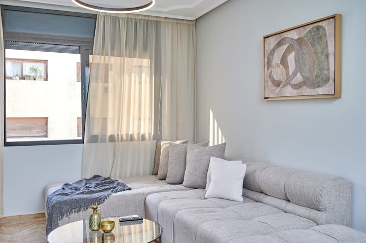 Začnime našu prehliadku v priestrannej, svetlej, modernej obývacej izbe, ktorá kombinuje zábavnú obývaciu izbu a príjemnú jedálenskú časť, ktorá vedie do plne vybavenej kuchyne. Presuňte sa do spálne a objavte veľmi pohodlnú oázu navrhnutú tak, aby ponúkala dokonalý odpočinok a relaxáciu po dni strávenom v meste Rabat!