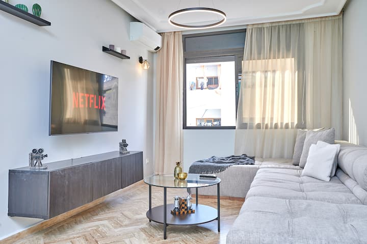 Objavte bezkonkurenčný luxus v našom úplne novom apartmáne 1BR. Ponorte sa do modernej elegancie s prvotriednym vybavením. Vychutnajte si pôvab moderného dizajnu, bezplatné parkovanie a vysokorýchlostný optický internet. Vaša oáza v srdci Agdalu čaká – čaká na vás výnimočný únik.