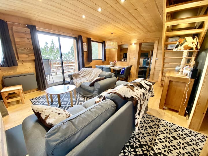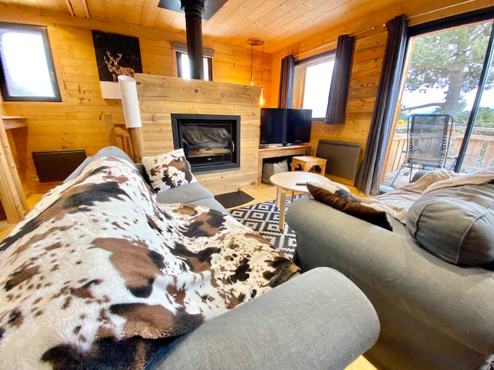 Výnimočná chata, samostatná, 6 m nad ulicou, budete dominovať susedstvu. BLÍZKO VŠETKÉHO a SAMOTA NAD BOROVICAMI, TICHO, terasa a nádherný výhľad na Cambre d 'Aze, údolie Eyne, Puigmal, Canigou