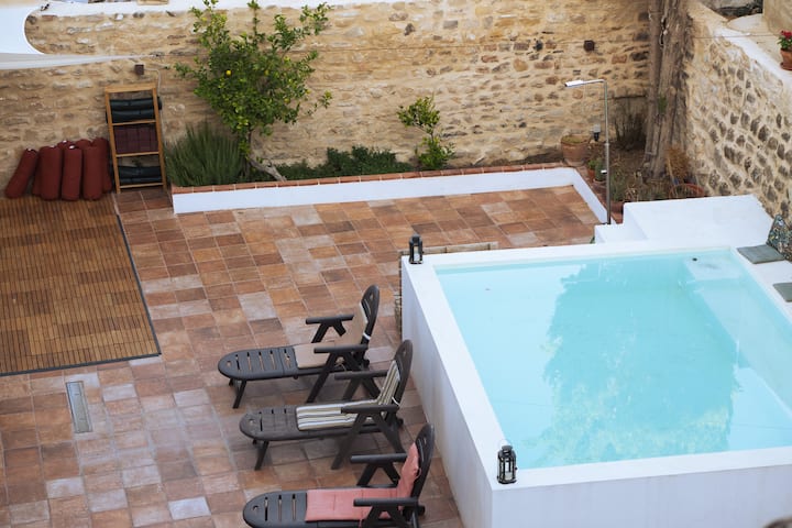 Objavte skrytý klenot Úbedy v našom očarujúcom dovolenkovom dome! Toto vysnívané útočisko sa nachádza v srdci malebného mesta Úbeda v Jaéne a ponúka vám jedinečný zážitok plný pohodlia a pokoja. Dom má 4 spálne, ktoré sú ideálne pre veľké skupiny alebo rodiny, ktoré chcú preskúmať krásy regiónu. Dve kúpeľne s toaletou zaručujú súkromie a pohodlie všetkých hostí. Plne vybavená kuchyňa je ideálnym priestorom na prípravu chutných jedál, a keďže je napojená na obývaciu izbu, môžete byť všetci spolu. Dom má tri poschodia, prízemie pozostáva z kúpeľne, obývacej izby - kuchyne s krbom, terasy s bazénom, jedálenského priestoru, ležadiel a miest na posedenie a priestoru na jogu. Na ďalšom poschodí je izba s manželskou posteľou a balkónom s výhľadom na tichú ulicu, kúpeľňa s vaňou a druhá izba s dvoma manželskými posteľami s výhľadom do záhrady. Najvyššie poschodie pozostáva z dvoch spální, trojlôžka s výhľadom na ulicu a s manželskou posteľou a súkromnou terasou s výhľadom do záhrady a na mesto a hory.