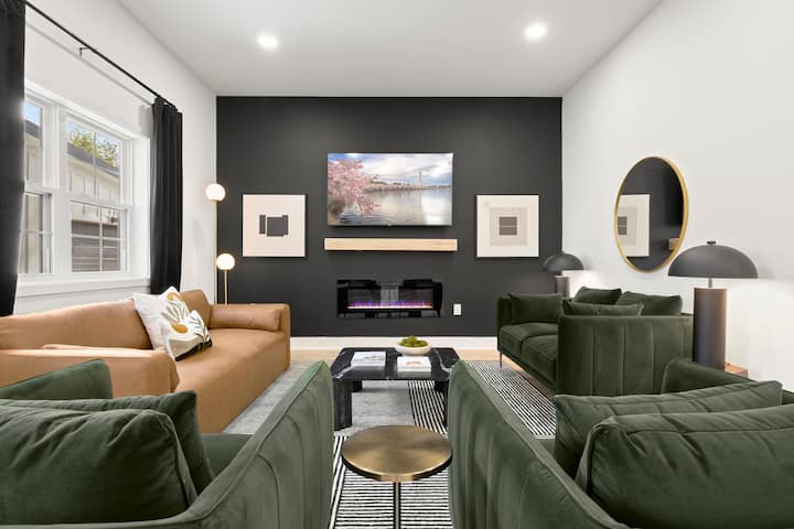 Spálne, každá súkromná enkláva pohodlia s plyšovými matracmi z pamäťovej peny, sú doplnené veľkými kúpeľňami, ktoré spájajú luxus s funkčnosťou. S ďalšími vymoženosťami, ako sú garáž a parkovanie na príjazdovej ceste, bezplatná práčka a sušička a blízkosť k základným službám a destináciám v centre DC, bol zvážený každý detail na zlepšenie vášho pobytu.