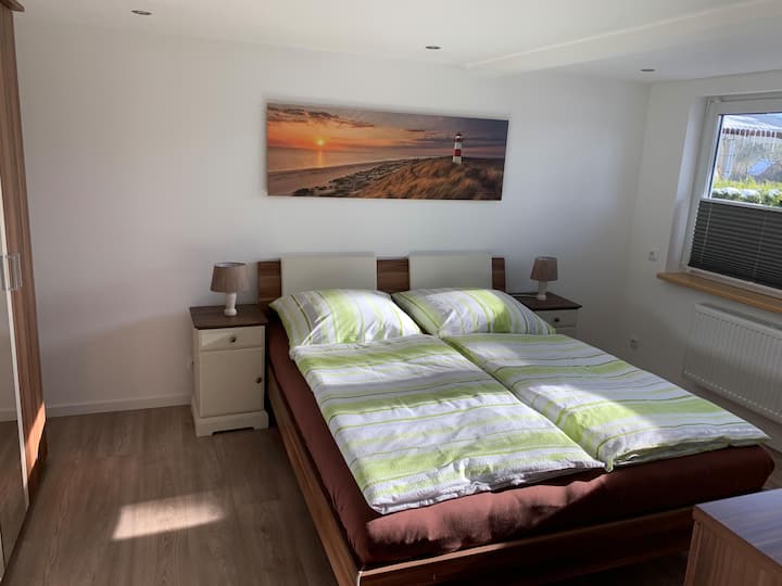 Nefajčiarsky rekreačný apartmán Moin v Langwedeli. Vytvorili sme tu malú oázu, aby ste sa tu cítili dobre, aby ste sa tu cítili ako doma. Či už na služobnej ceste, na dovolenke alebo na návšteve priateľov alebo príbuzných – najdôležitejšou vecou pri cestovaní je okrem dobrej postele aj útulný pocit v útulnej atmosfére. Apartmán sa nachádza na prízemí nášho rodinného domu a má asi 78 metrov štvorcových vysokokvalitného a moderne zariadeného obytného priestoru. Počas pobytu máte k dispozícii zariadenú terasu so záhradným rybníkom a grilom, ako aj krytá nabíjacia stanica pre elektrické bicykle. K dispozícii je uzamykateľná cyklistická miestnosť. Domáce zvieratá nie sú povolené. Ponúkame vám veľkú osvetlenú obývaciu izbu s jedálenským kútom a pultom, plne vybavenú kuchyňu s 8 m pultom (vrátane Kávovar, hriankovač, varič vajec, rýchlovarná kanvica atď. ), špičková luxusná kúpeľňa. Naša nehnuteľnosť je vybavená vodou, takže môžete očakávať úplne bez vápna. Môžete očakávať: jednu spálňu s manželskou posteľou, šatníková skriňa, vysoká doska s inteligentnou televíziou, detskú/ hosťovskú izbu s jednou jednolôžkovou posteľou a vrátane stenovej postele. Komody a televízor, miestnosť na nápoje/ sklad so samostatnou extra chladničkou/ mrazničkou, chodba s podlahovým kúrením a automatickým dezinfekčným dávkovačom. Ďalšie vybavenie: 55-palcová inteligentná televízia, hudobný systém, 24-palcový i-Mac pc, možný bezkľúčový prístup, Wi-Fi a LAN pripojenia (optické vlákno 200 Mb/s), sušič vlasov, vysávač, žehlička, žehliaca doska, sušiak na sušenie, stojan na korenie, čajové variácie, moderné internetové /dab+ rádio, pingpongový stôl, posteľná bielizeň a uteráky zahrnuté v cene prenájmu. Užite si pobyt u nás!