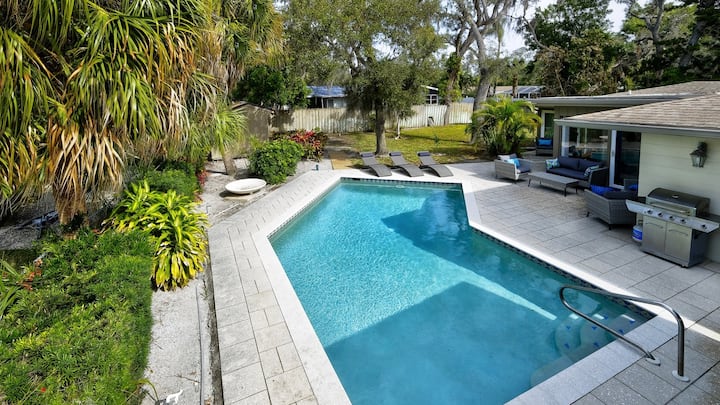 Zažite pokoj v Sandalwood Tranquility, vkusne zrekonštruovanej rezidencii v Sarasote, ktorá sa nachádza v blízkosti pláží Siesta Key. Táto nádherná nehnuteľnosť sa môže pochváliť vyhrievaným bazénom so slanou vodou a tromi priestrannými spálňami spolu s dvoma dobre vybavenými kúpeľňami navrhnutými tak, aby poskytovali maximálne pohodlie.