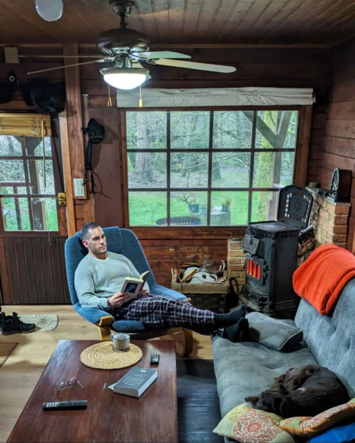 Drevená chata v tichom malom lese.