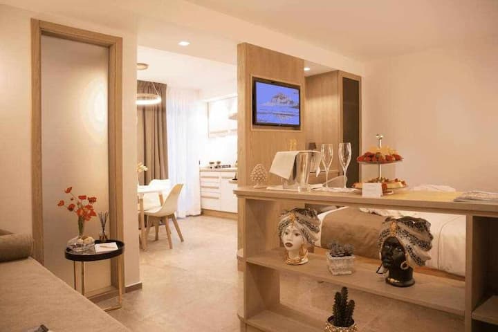 Naše apartmány sú kompletne zrekonštruované a premyslené v každom detaile, od výberu materiálov, ktoré to tvoria, až po starostlivosť, s ktorou boli zariadené, a poskytujú štruktúram jasným znakom elegancie, štýlu a pohodlia. Meravigghia Suites Cefalù ponúka bezplatné a neobmedzené Wi-Fi vo svojich apartmánoch, klimatizáciu, bezpečné a súkromné parkovanie za príplatok. Každý apartmán je nezávislý a má vlastnú kuchyňu, kúpeľňu a obývaciu izbu. Kuchyňa je vybavená všetkým, čo potrebujete, od spotrebičov až po služby riadu, príborov, pohárov a hrncov. K dispozícii budete mať rohový bar, kde nájdete kávovar Nespresso, elektrické citrusy a hriankovač a relaxačný bylinný čajový kútik, kde sa môžete podeliť o svoje chvíle v plnom pokoji a pohode. Priľahlé k relaxačnému priestoru zariadenému s elegantnou a pohodlnou pohovkou, kde si môžete oddýchnuť. Bude vás obsluhovať inteligentná satelitná nástenná televízia s niekoľkými streamovacími službami. Kúpeľne vyrobené z nábytku z masívneho dreva a pozornosť venovaná každému detailu sú vybavené práčkou a veľkými sprchami s chromoterapiou. Ponúkajú luxusný zdvorilostný a toaletný servis od značky Moro, sušič vlasov, uteráky a kvalitné župany, ktoré vám poskytnú všetko pohodlie a urobia váš pobyt luxusným. Aby sme zaistili čo najlepší odpočinok a pohodlie, vybavili sme naše apartmány s matracmi, zvrškami, vankúšmi a roštovými sieťami v najlepšej kvalite, ktoré sú vybavené posteľnou bielizňou.