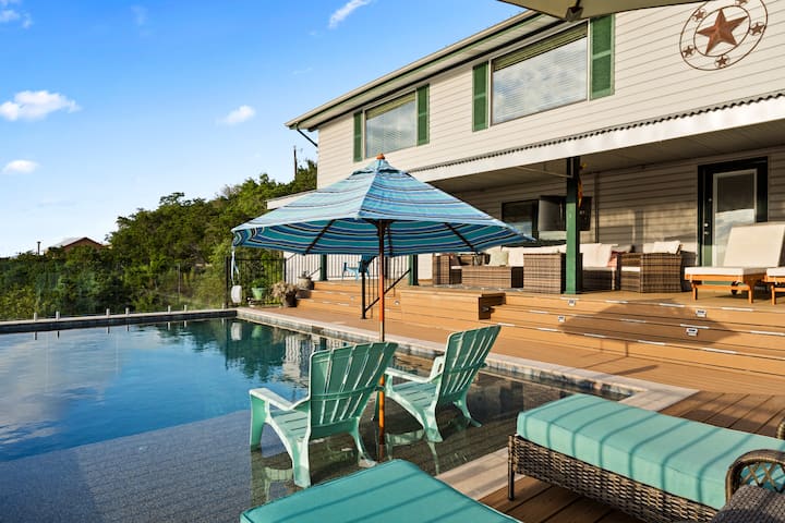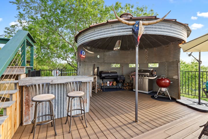 Celý dom! Toto je dovolenkový raj v rezorte! Dostatok miesta na rozloženie. Prejdite na Silo Sky Deck & Bar a vychutnajte si úchvatný výhľad na Canyon Lake a krajinu Texas Hill! Plávajte v bazéne!
