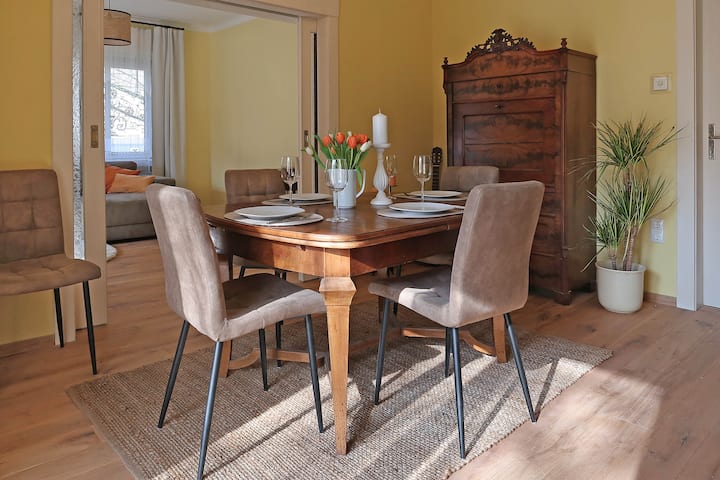 Vysoko kvalitný a udržateľne zariadený dovolenkový apartmán vás pozýva cítiť sa ako doma. Bol kompletne zrekonštruovaný do marca 2024. Všetky izby sú vybavené podlahovým kúrením. Spolu s krásnymi prírodnými kamennými podlahami, pravými drevenými podlahovými doskami a nábytkom z masívneho dreva zaisťujú útulné pohodlie v každom ročnom období.