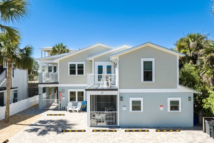 Vitajte v Maritime Place Unit A, priestrannej jednotke na prízemí dokonalého dovolenkového domu v srdci pláže St. Augustine Beach a kúsok od piesku, početných reštaurácií, barov, obchodov a móla St. Johns County Ocean Pier! Tento úplne nový veľký rodinný dom má ideálne dispozičné riešenie pre rodiny a skupiny. Okrem pohodlných vnútorných a vonkajších obytných priestorov a spální je tu aj garsónka, ku ktorej sa dostanete vonkajšími dverami a uzamykateľnými vnútornými dverami. Nachádza sa len pár domov od pláže a vychutnáte si krátku 1 až 2 minúty chôdze od krásnej pláže na promenádu.