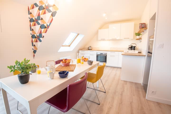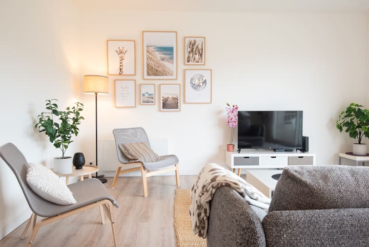 Zbaľte si kufre v tomto krásnom a priestrannom apartmáne s elegantným dizajnom pár minút chôdze od centra mesta Larmor, pláží a oceánu.