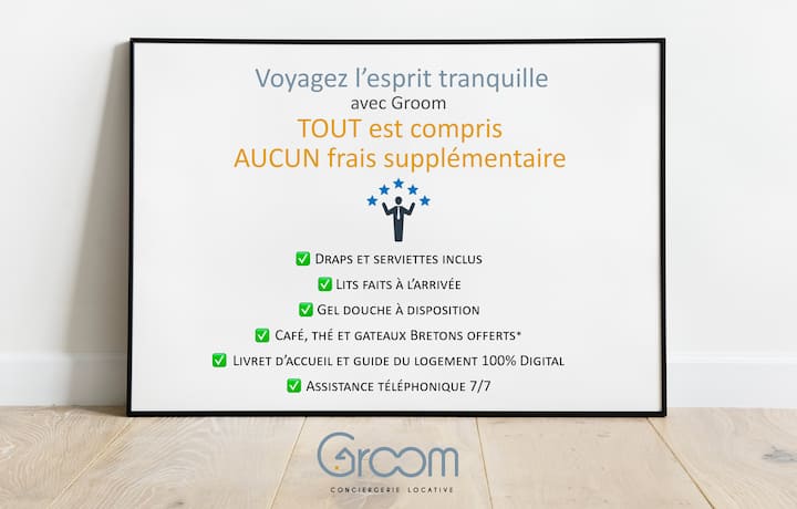 Pokiaľ ide o reštaurácie, tím Groom vám poradí najlepšie miesta na pobreží a v meste Lorient, ktoré nájdete aj vo svojej digitálnej uvítacej brožúre s recenziami, informáciami a pokynmi, ako sa tam dostať z apartmánu.